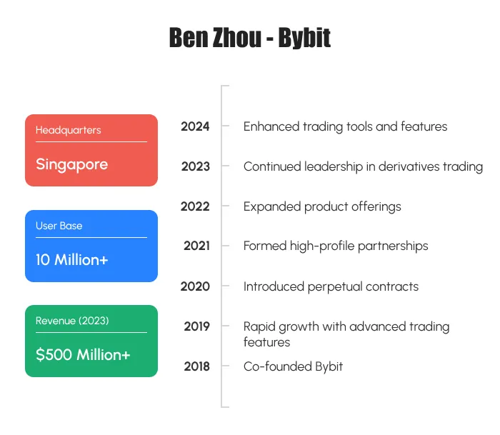 Ben Zhou is the co-founder and CEO of Bybit, a cryptocurrency derivatives exchange that has gained prominence for its innovative trading features. Since its launch in 2018, Bybit has become a major player in the derivatives market, offering leveraged trading on cryptocurrency futures.